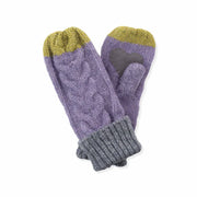 Cuddly-soft cable-knit yarn combines with a super-cozy chenille lining to make these Minzy mittens a treat to wear. These women's mittens show off complementary contrast colors on the cuff and top. A heart-shaped faux suede patch on the palm makes a cute accent.