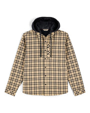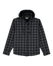 • Comfortable snap-closure shirt with a built-in hoody and drawcord adjusts