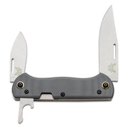A modern take on a classic knife pattern. The 317 WEEKENDER® is a Benchmade redux of a traditional slip-joint multi-blade pocketknife tailored for your favorite weekend adventures. Featuring CPM-S30V steel, the WEEKENDER® boasts a clip-point main blade, a smaller utility drop-point blade, and a folding bottle opener – everything you need to complete your camp chores and enjoy a cold one by the fire. From whittling wood to preparing the day’s catch, the 317 WEEKENDER® is an urban-friendly, campsite-ready jack of all trades.